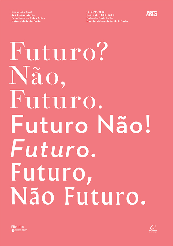 Futuro Não Futuro was the final show of the Faculty of Fine Arts of University of Porto at Palacete Pinto Leite, in Porto.