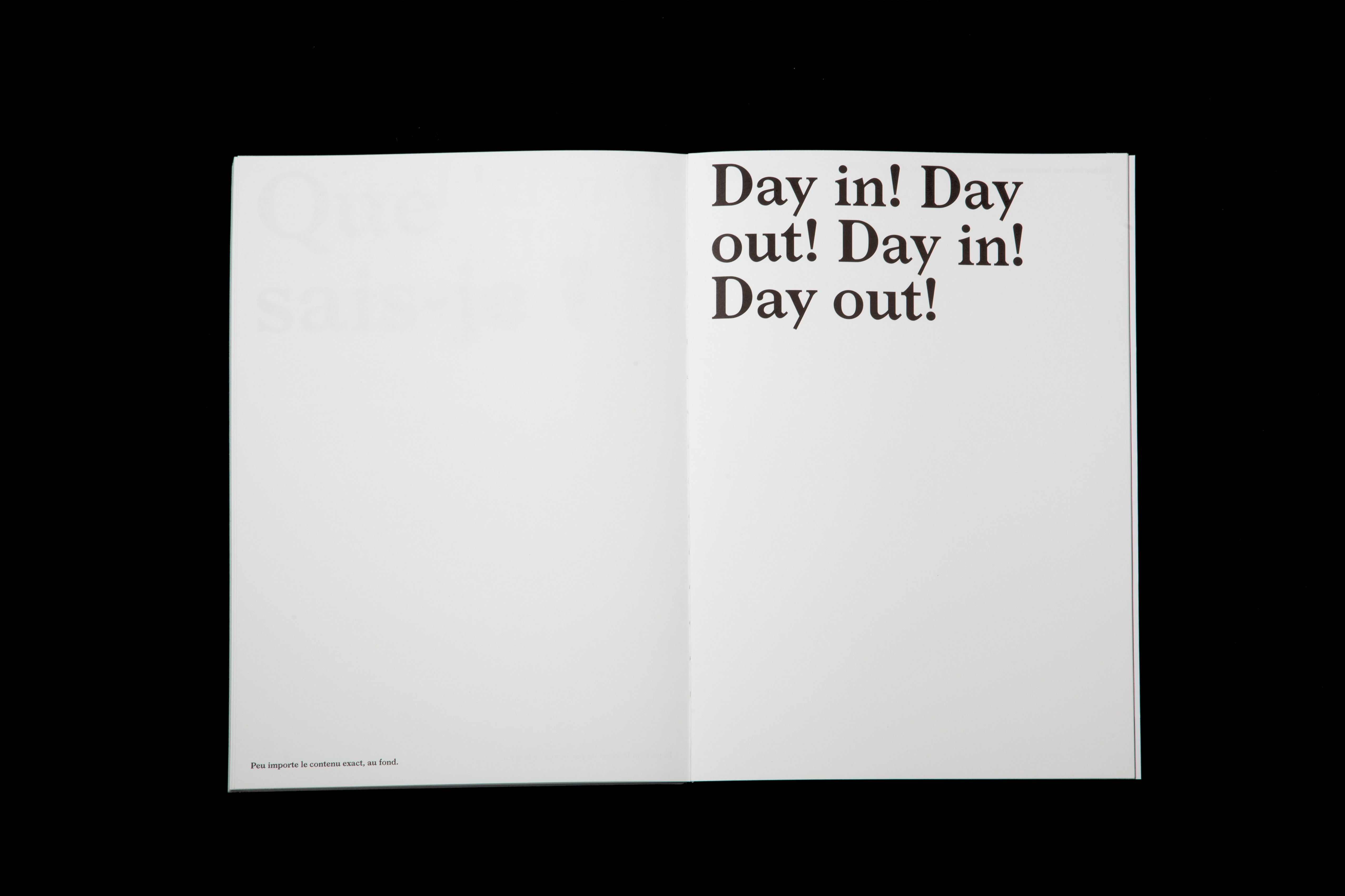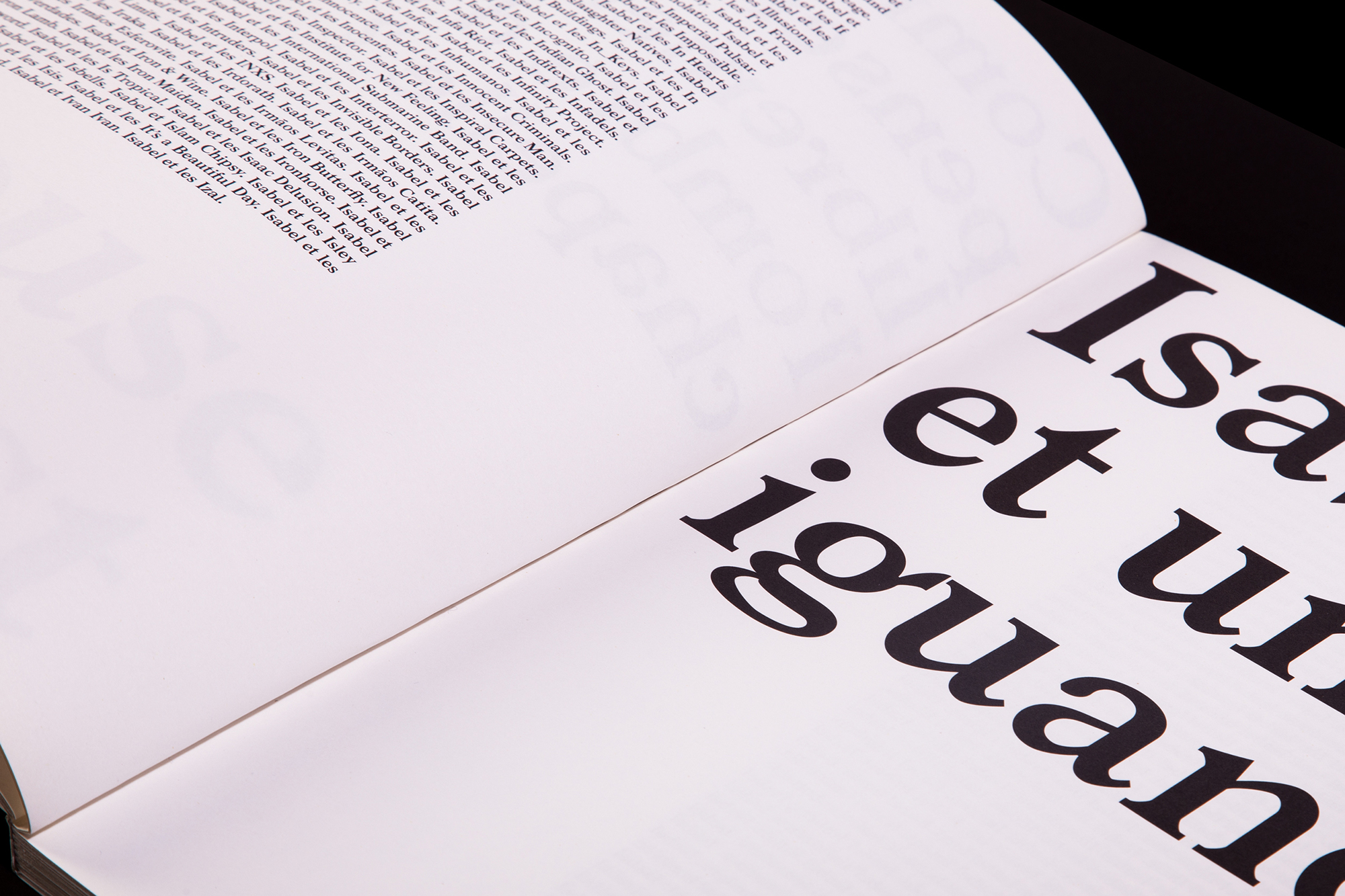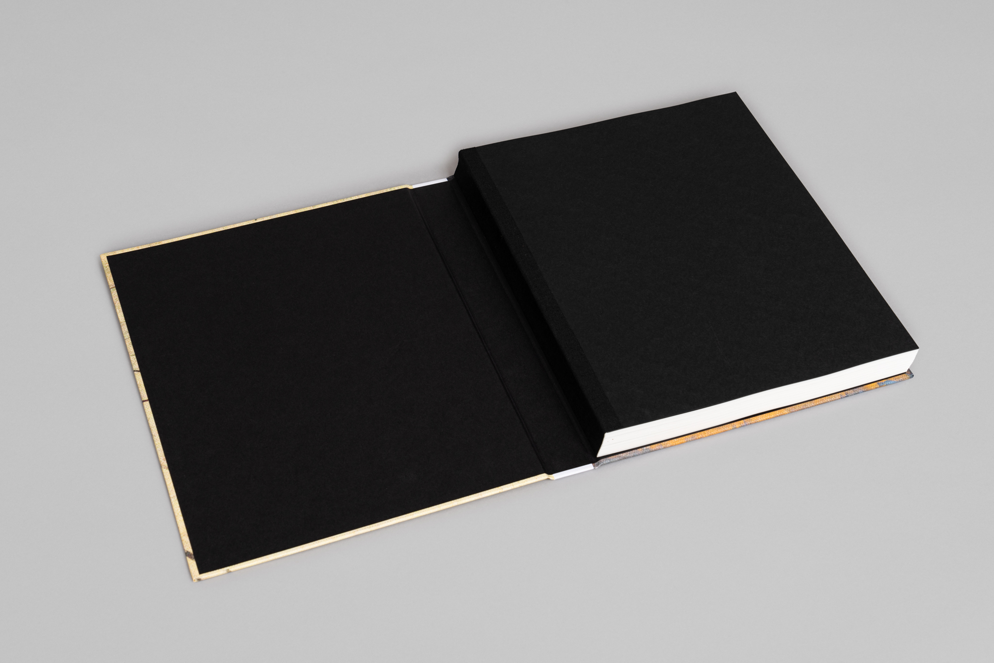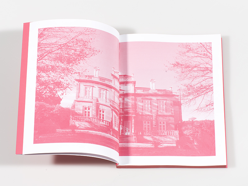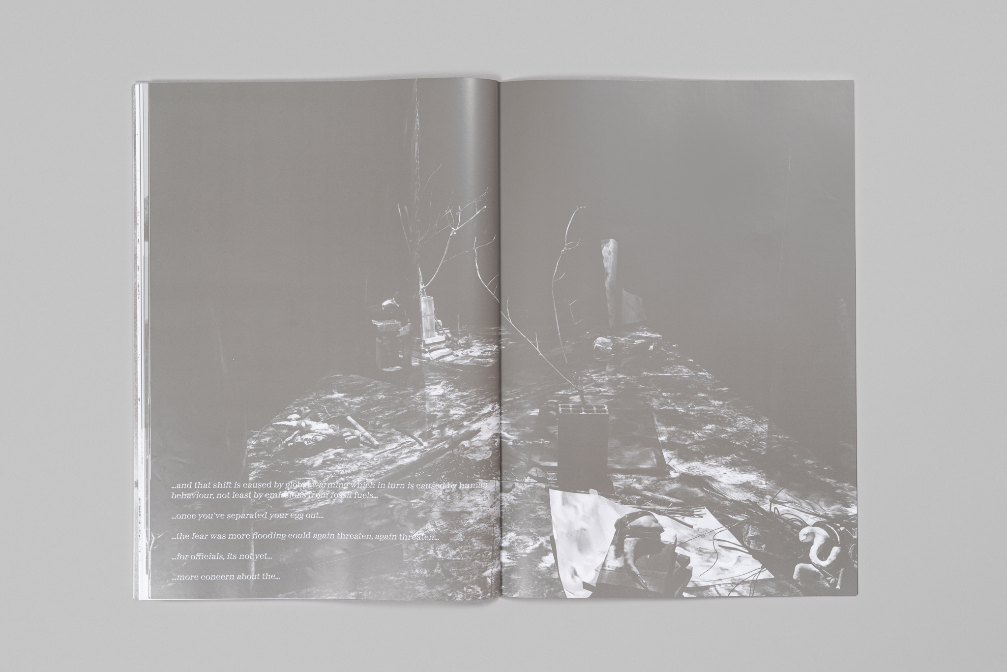 Instead of using offset ink, the book was printed in squid ink, to relate to the exhibition space, which was flooded with it. This gave the book different tones and nuances of color throughout it.