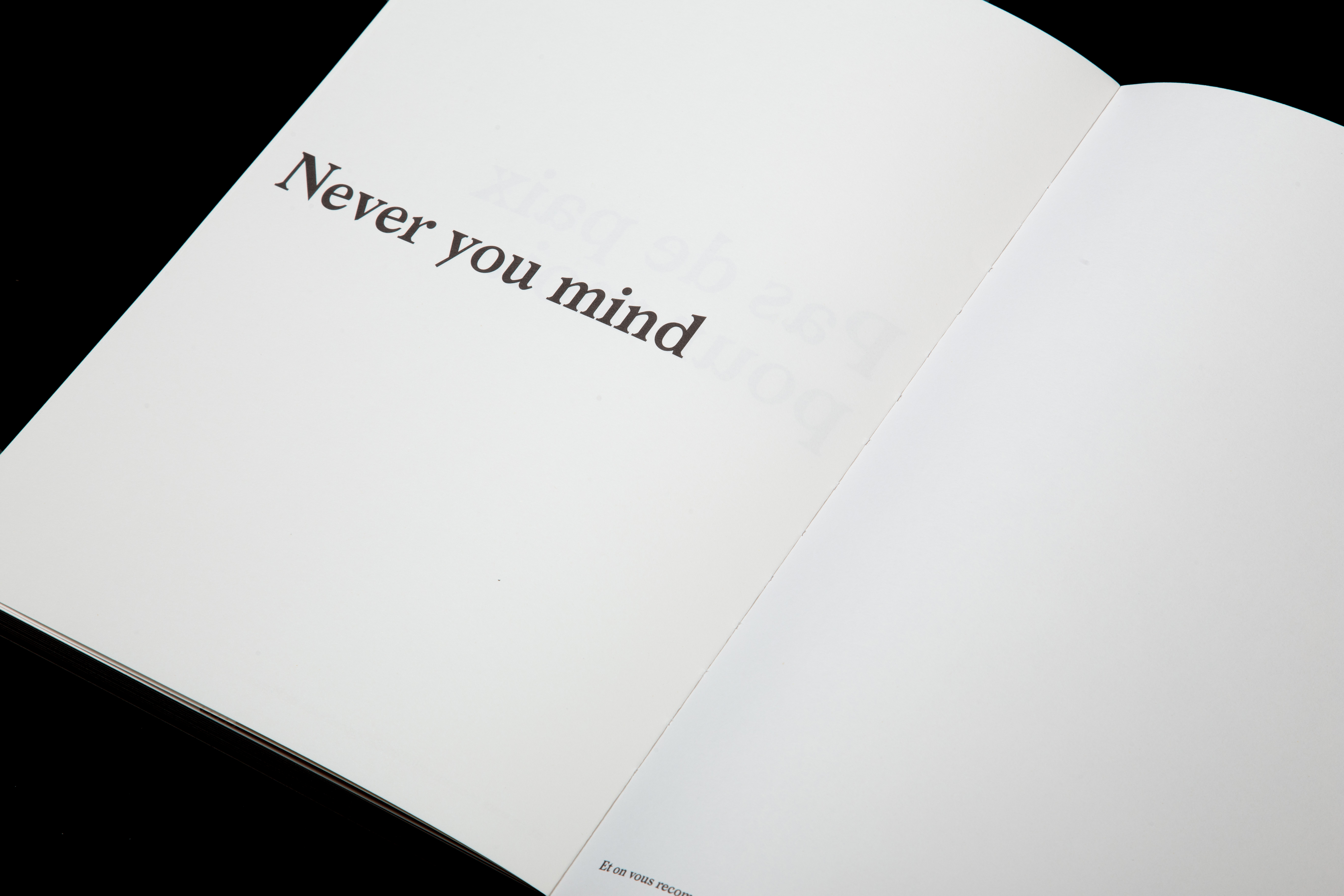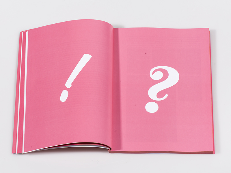 The identity of the show was based on that. Using a pink that would ironize this situation, while using different punctuation in order to create new meanings with the title — Future No Future.