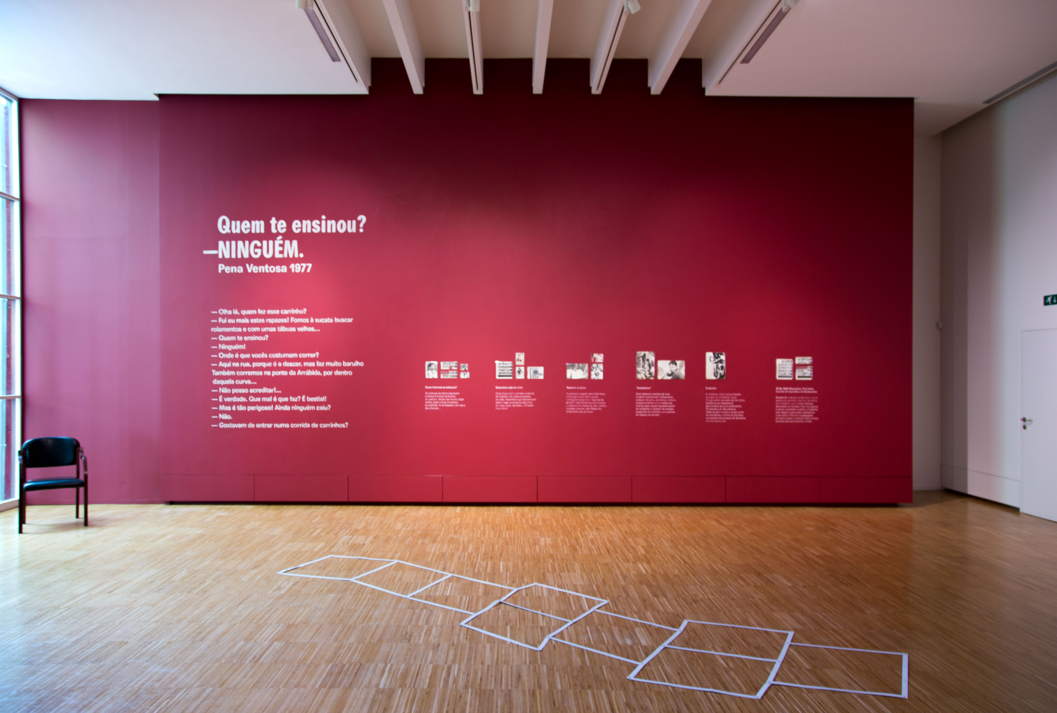 Exhibition design for Quem te ensinou? —Ninguém. This exhibition presented the process of Elvira Leite, that during the years after the 1974 revolution in Portugal, developed a social project with the kids of a very poor neighbourhood in Porto.