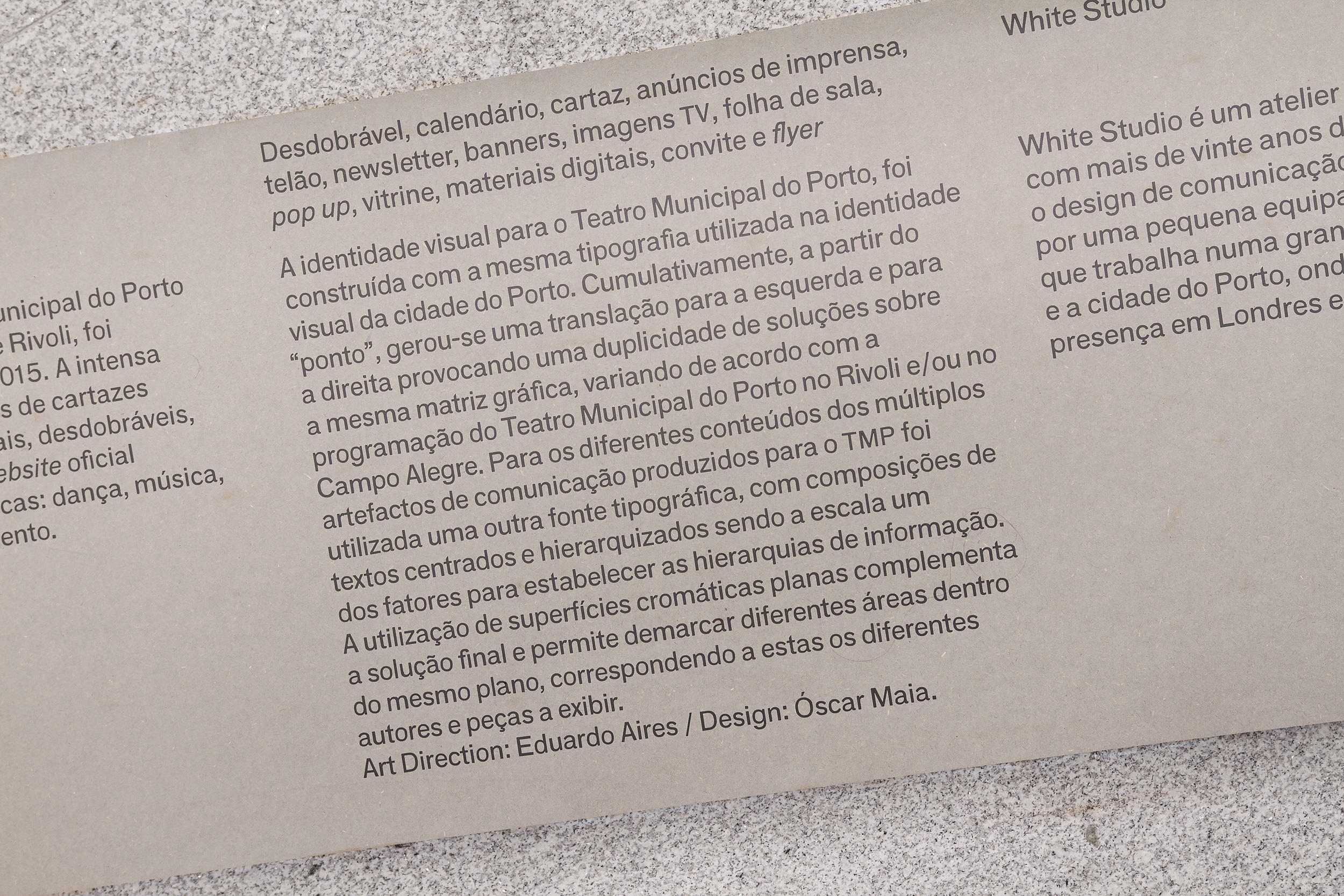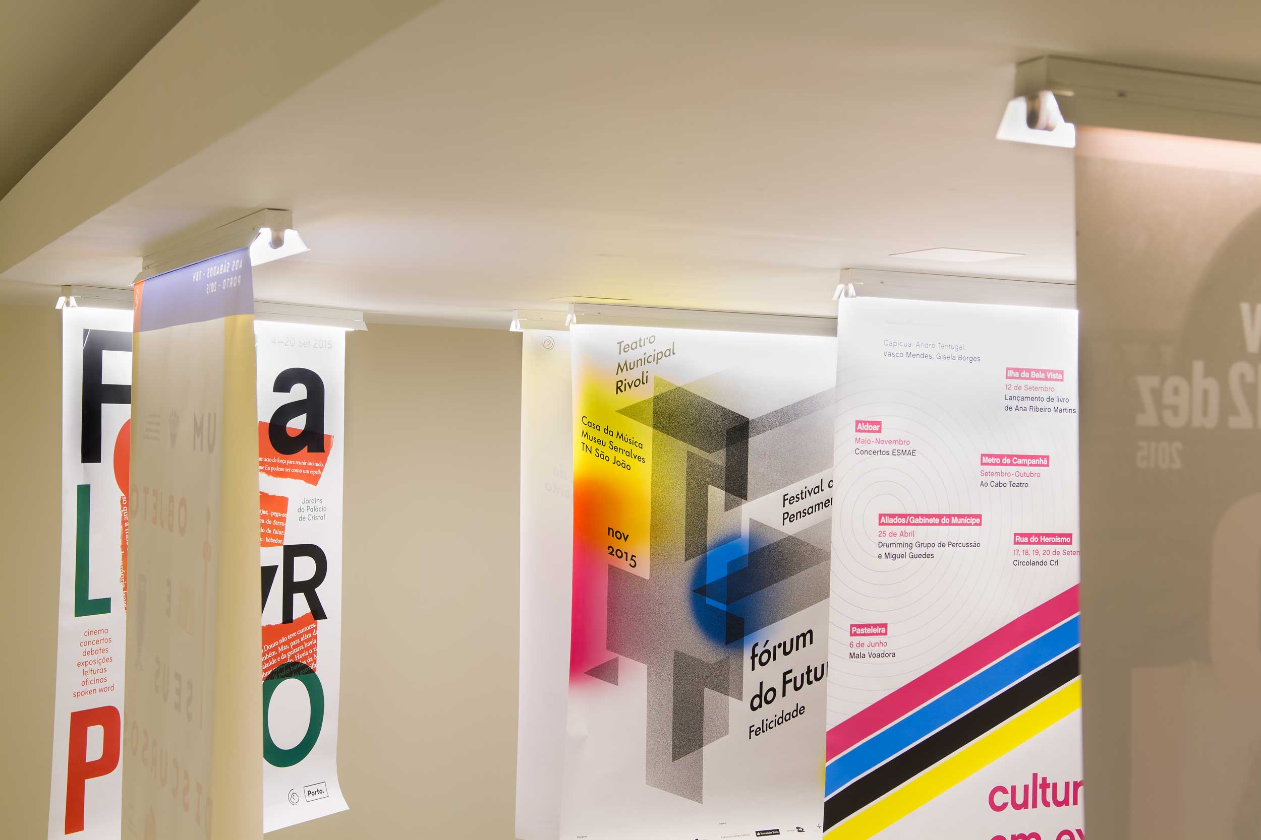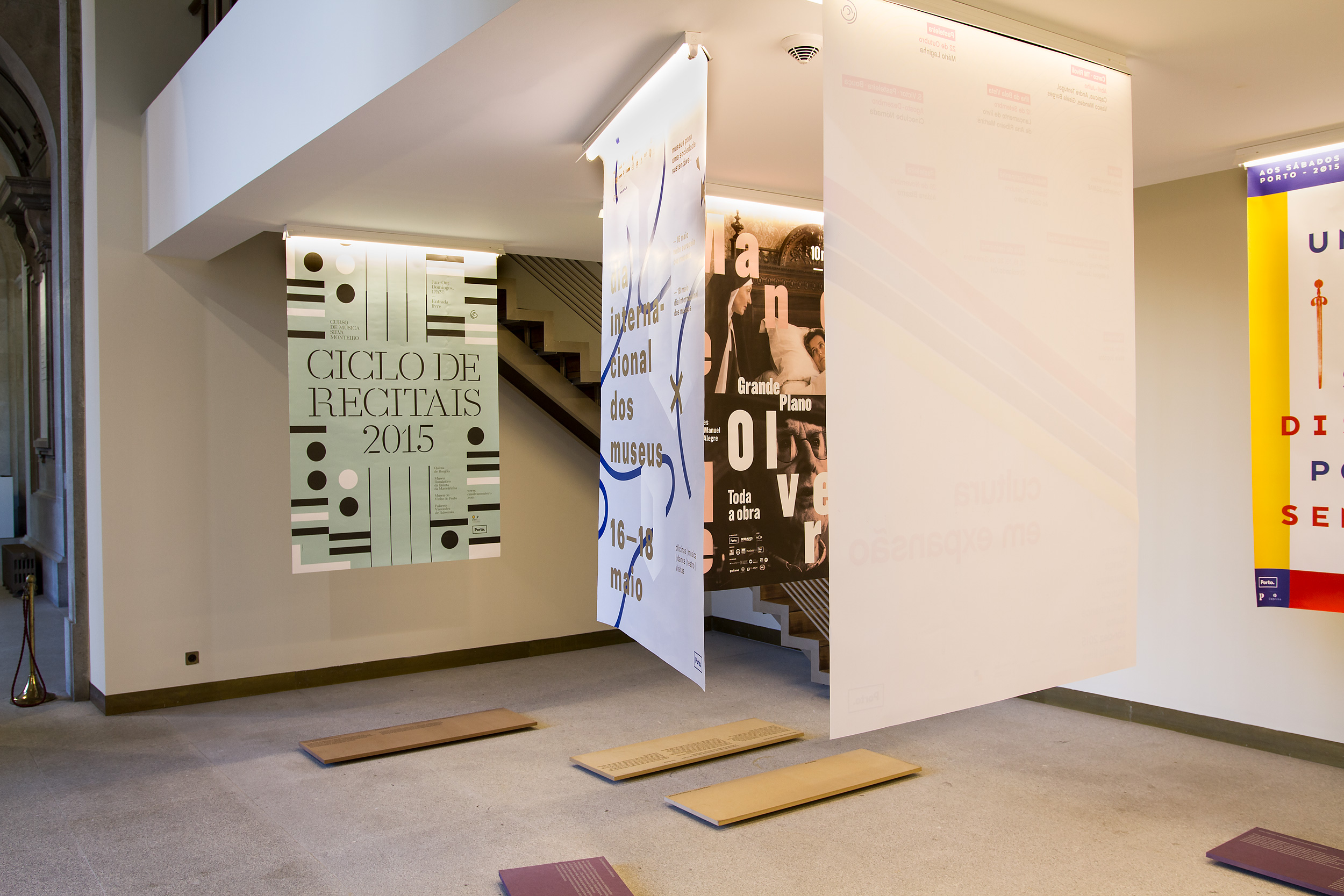 In 2016, Luís Pinto Nunes and I were invited to curate and design the exhibition that presented all graphic work commissioned by the Cultural Sector of Porto Municipality in 2015. The exhibition took place at the building of Porto Municipality.