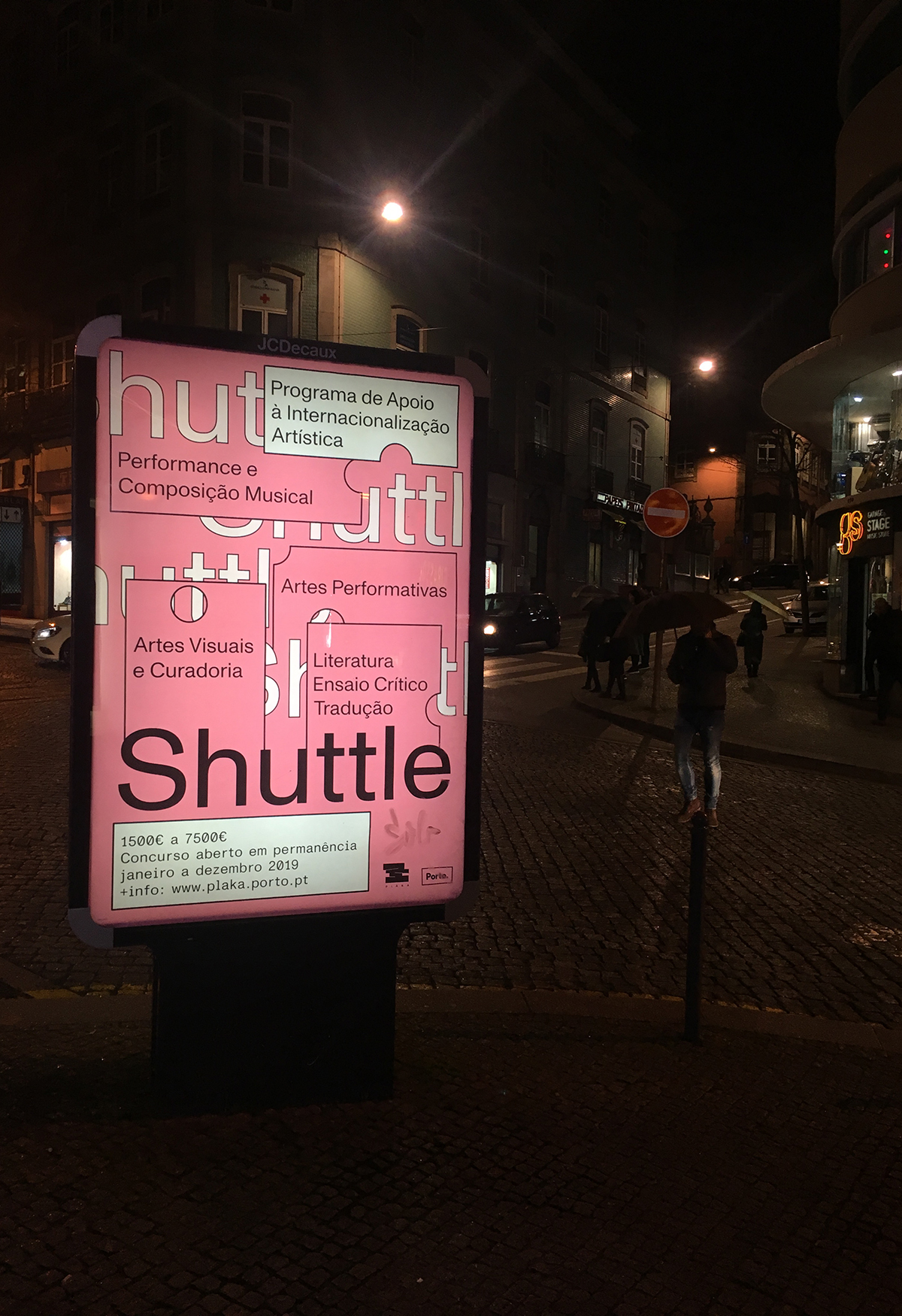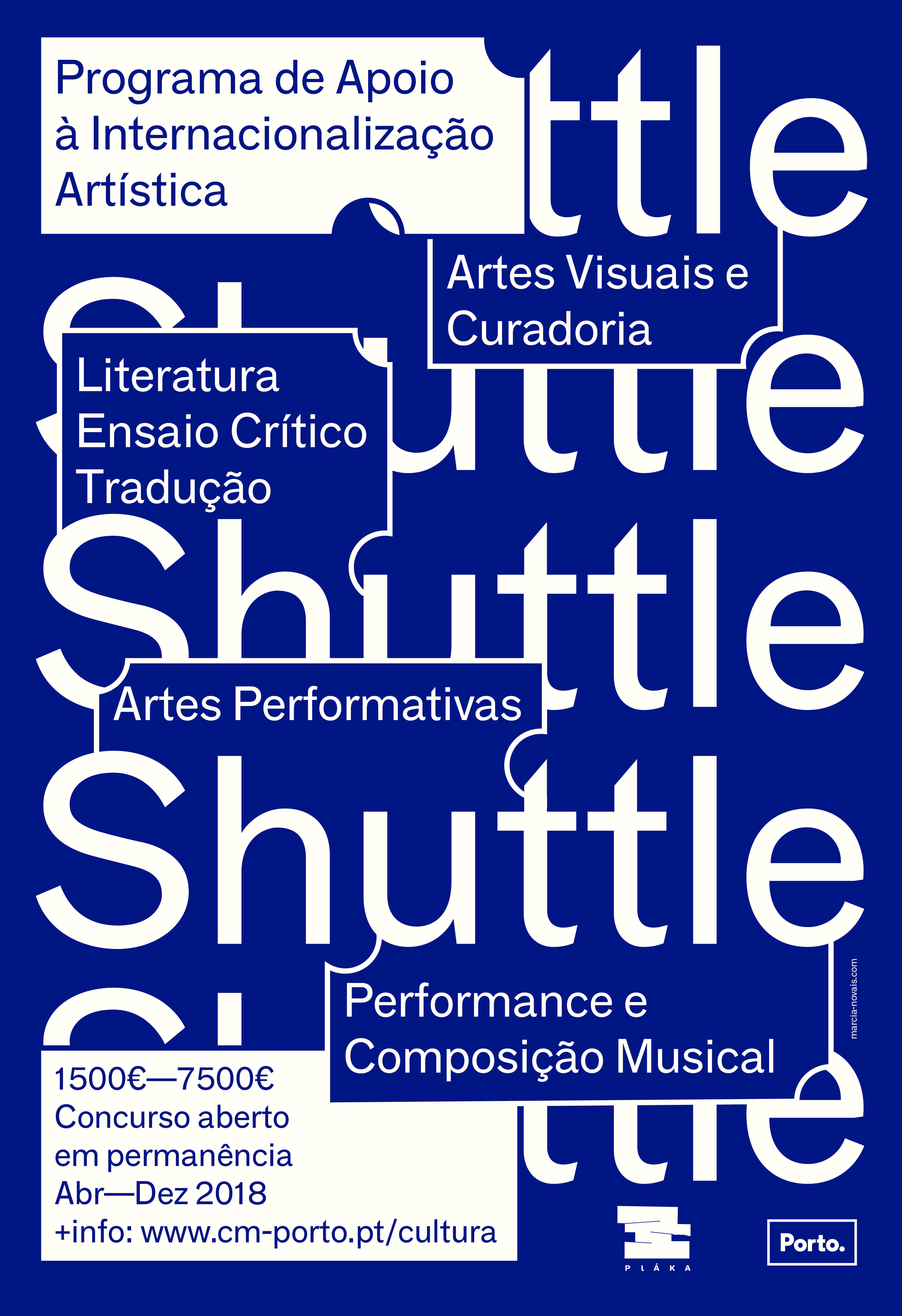 The identity of the program was designed from the idea of the Shuttle as a ticket for internationalisation of art projects of Porto.