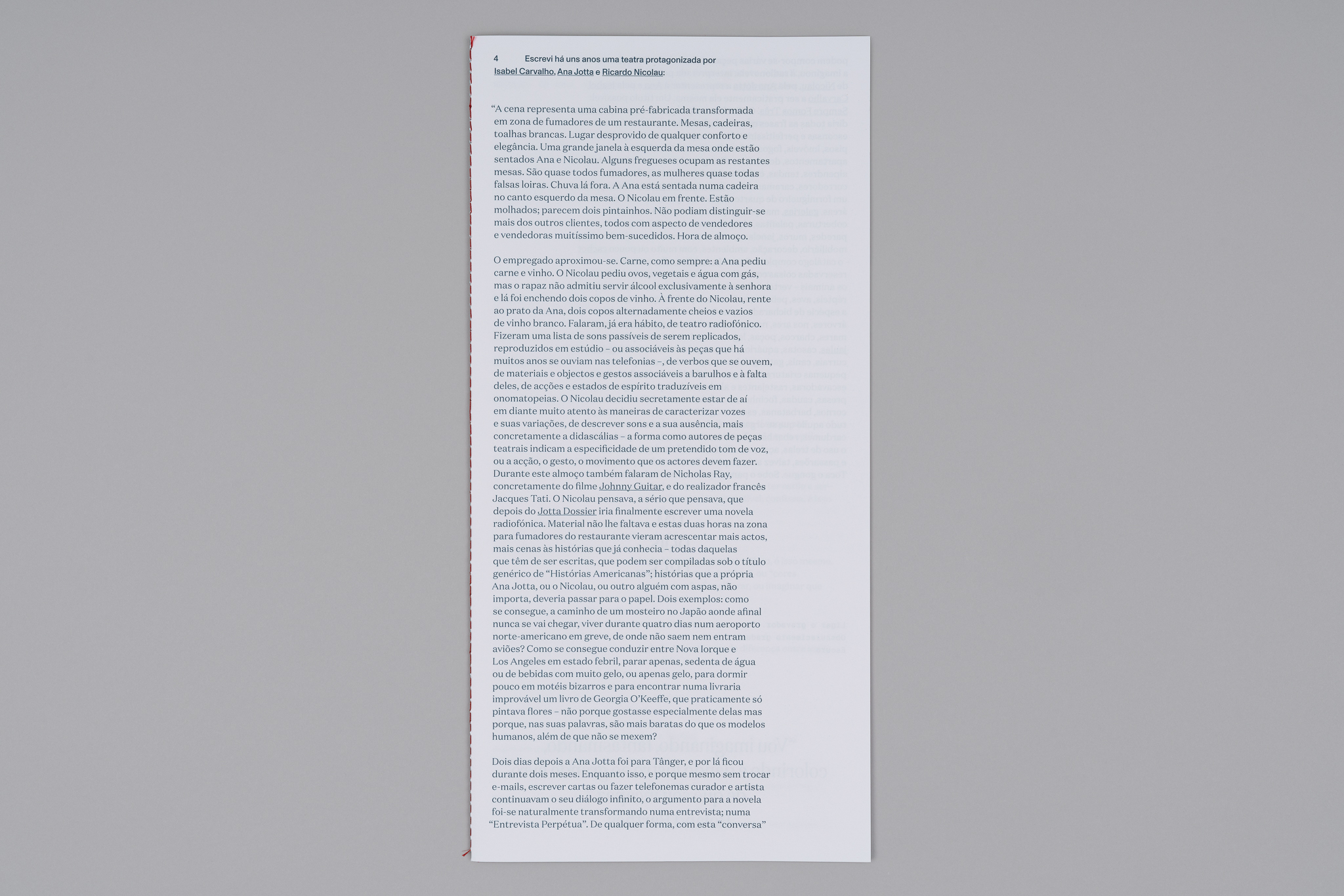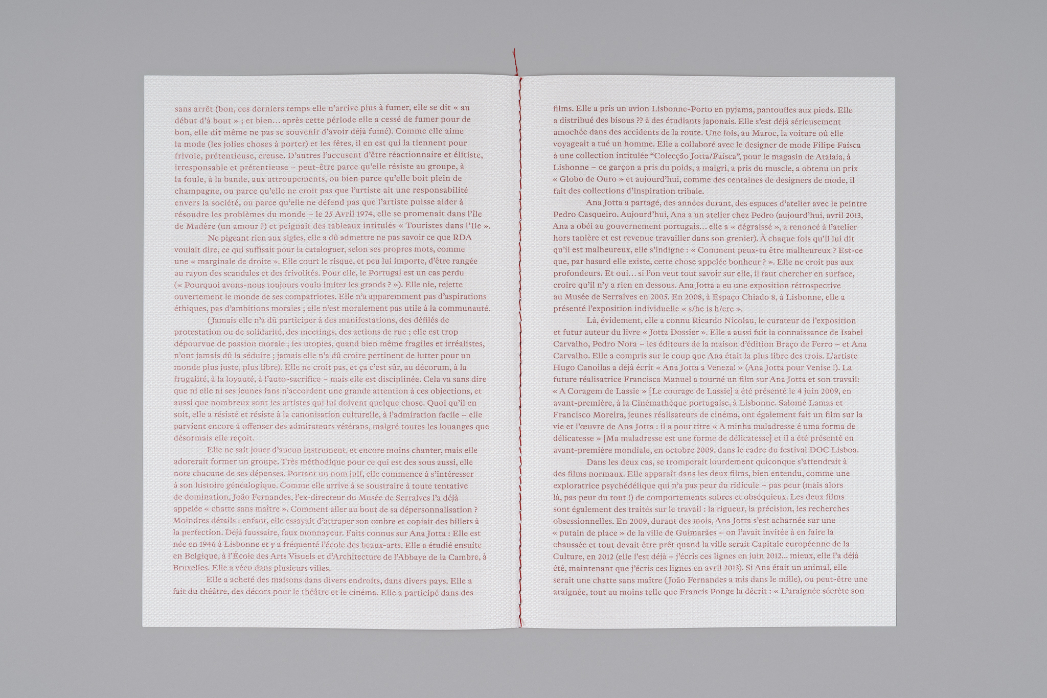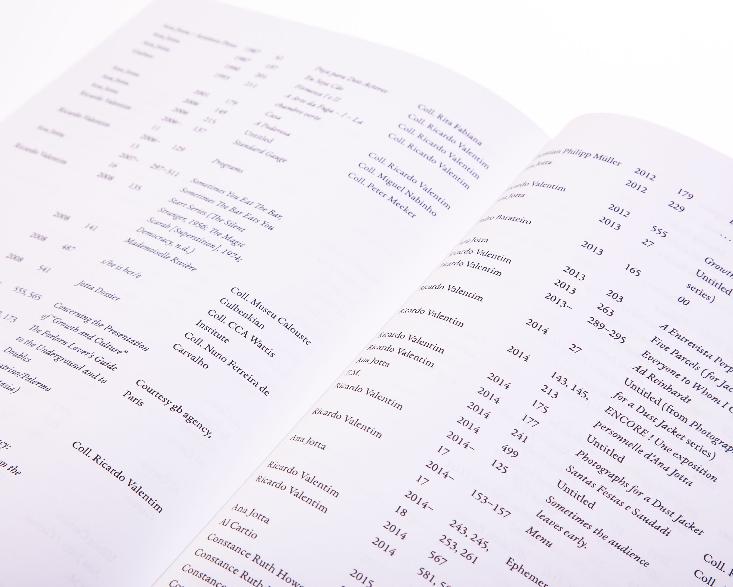 This book is an perpetual interview by Ricardo Nicolau to Ana Jotta. This interview never gives the reader the answers by Jotta, but it presents all the questions Nicolau has been making her during the years, in several languages.
