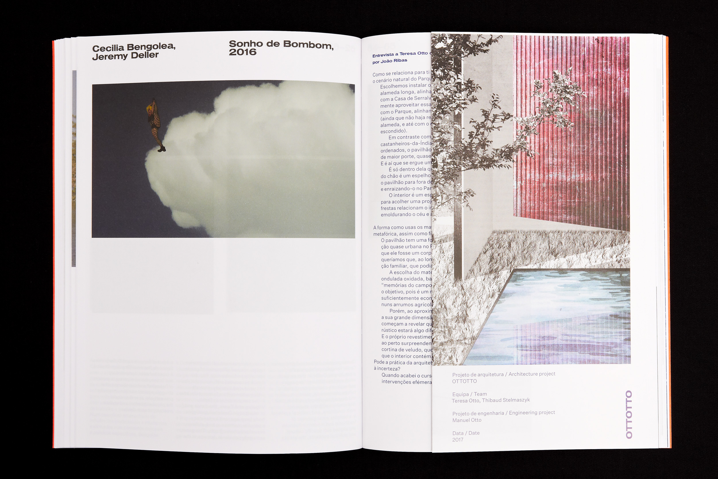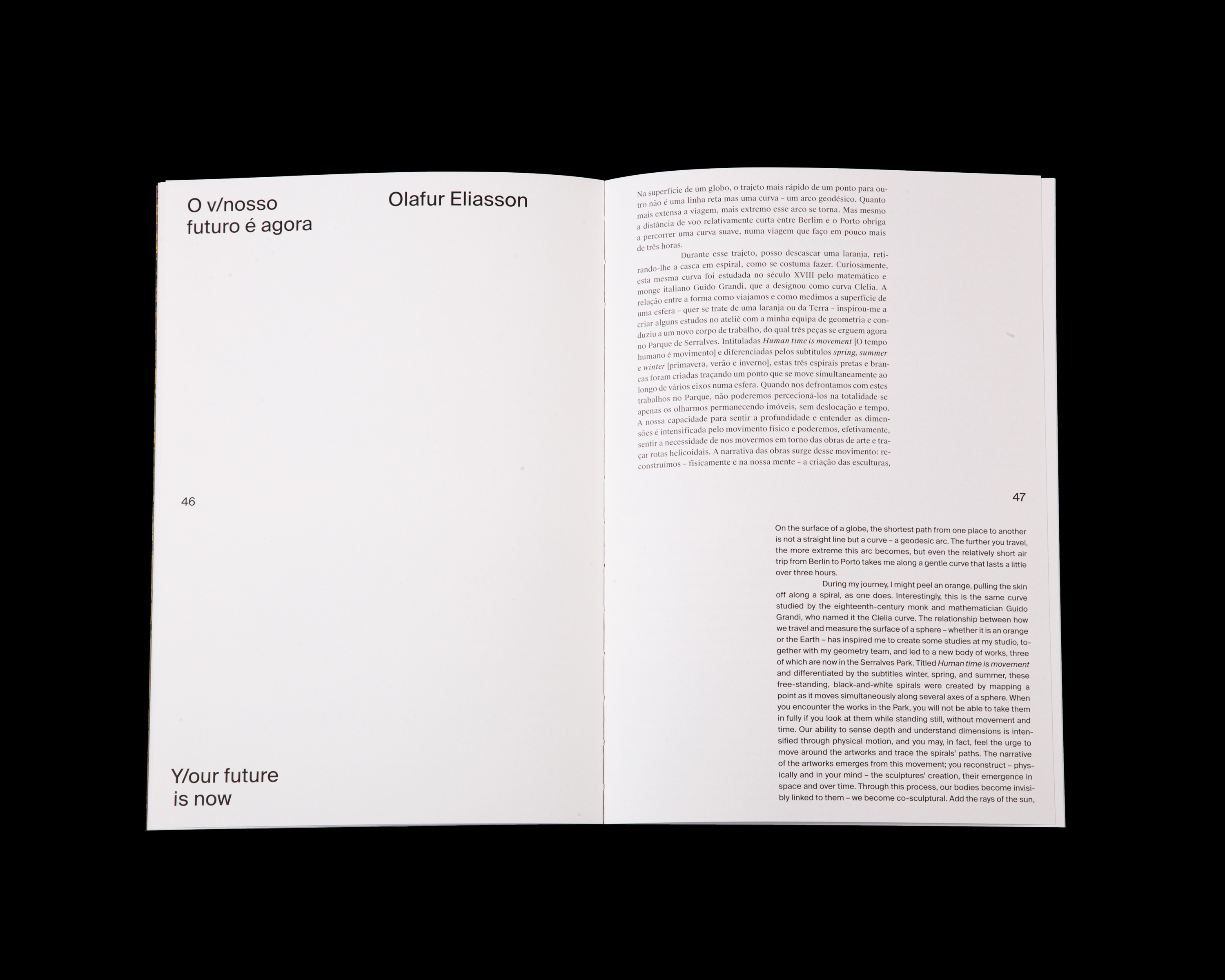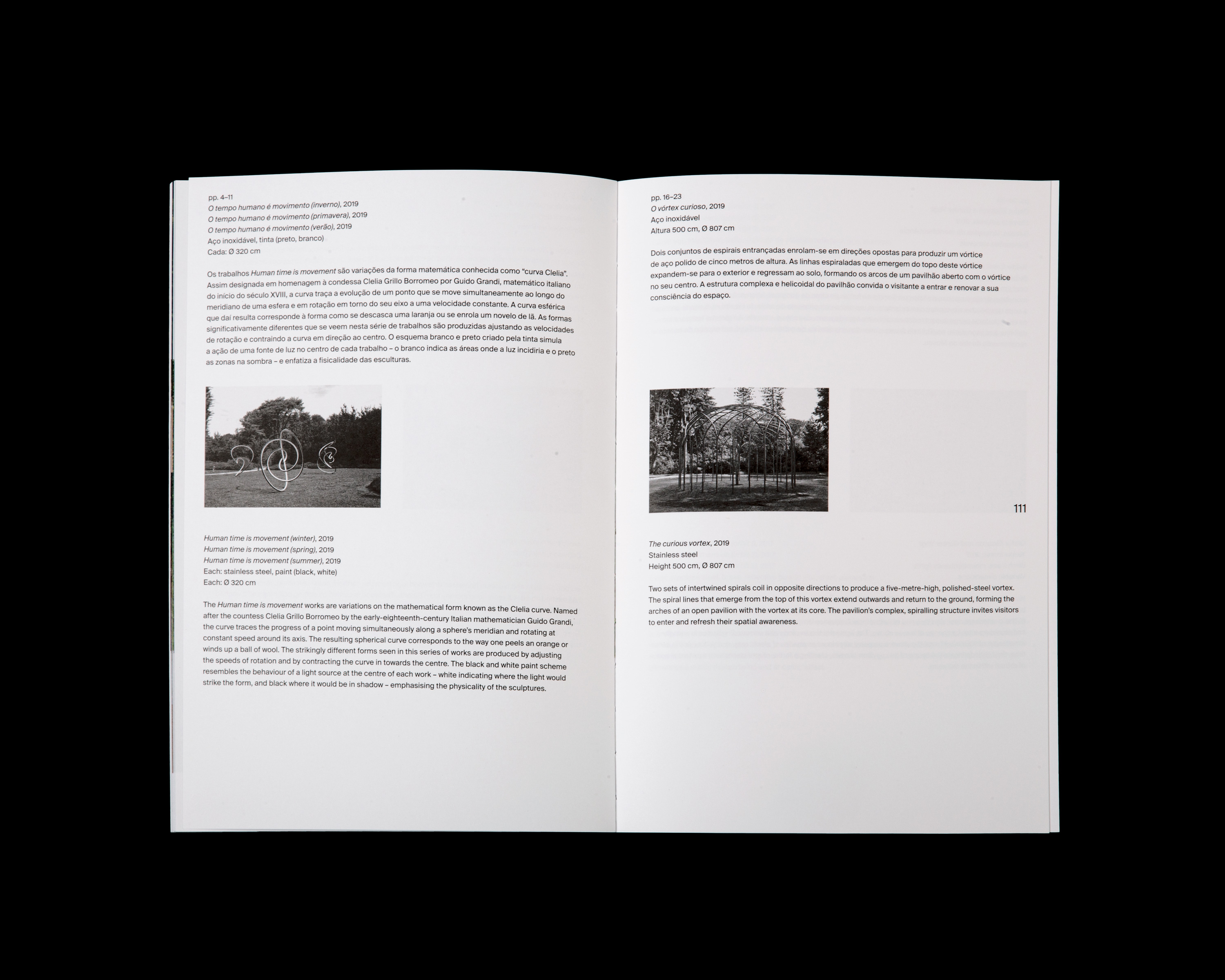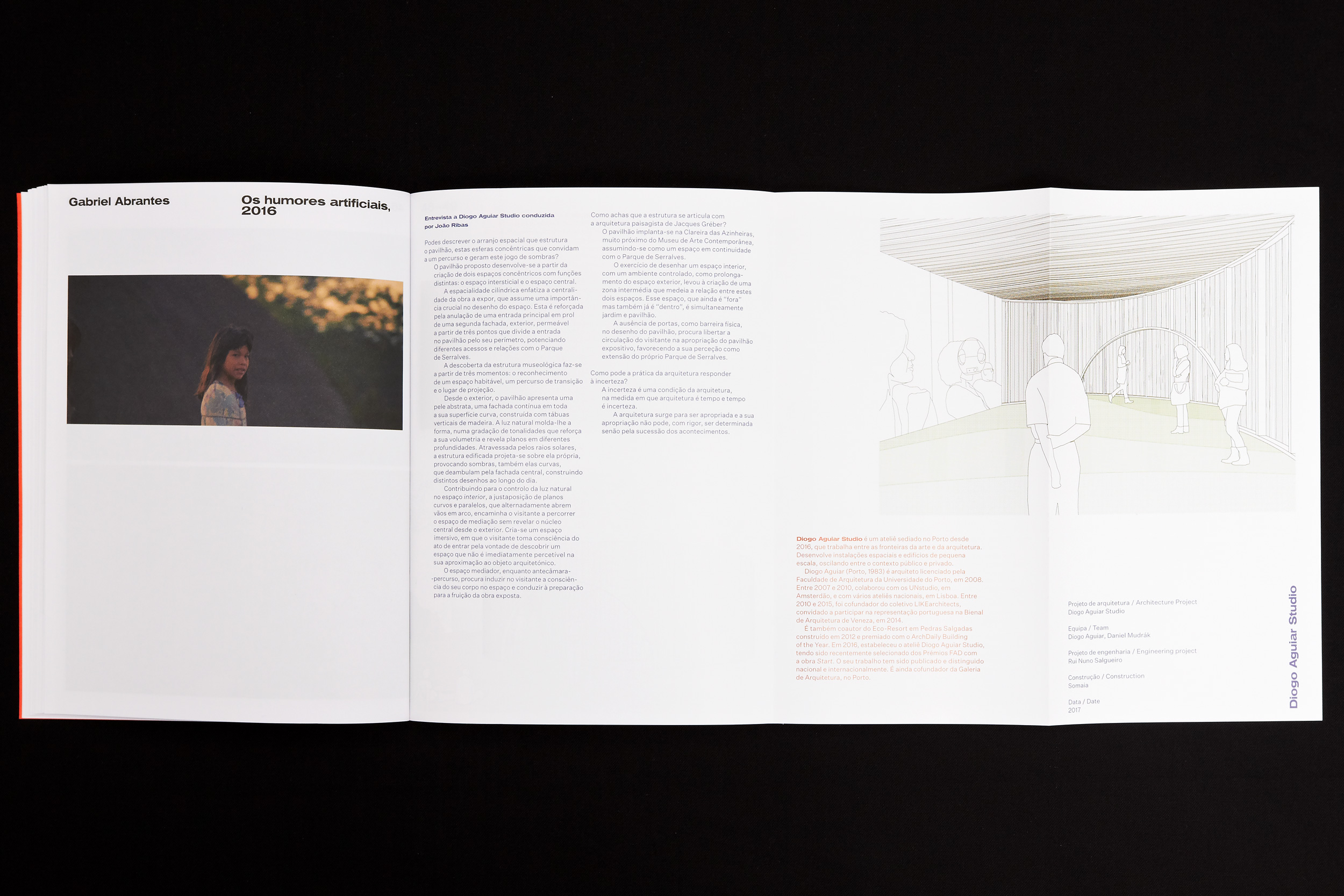 For the catalogue, it was important to present it as a guide to the exhibition, establishing which pieces were installed at the park and at the museum and represent the temporary pavilions in the publication.