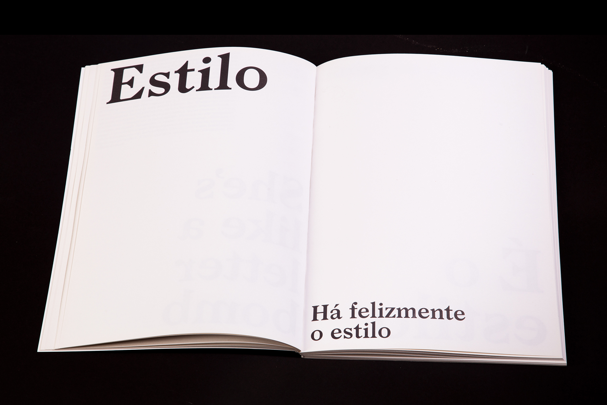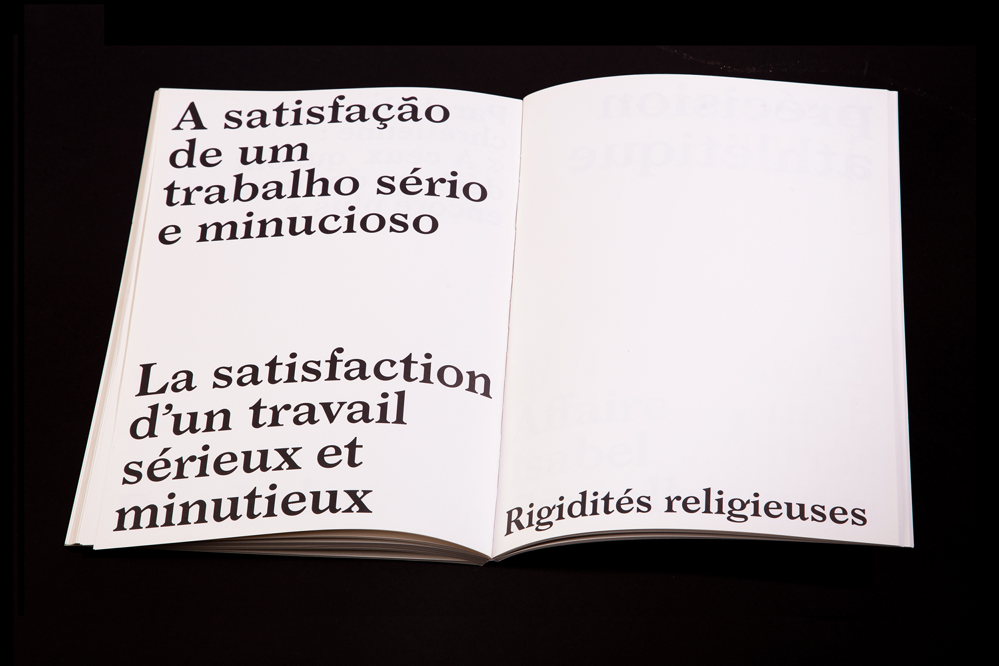 The book page is organised in two columns. The one in left presents the text in Portuguese, and the one in the right, the text either in Spanish, French or in English — they run one after the other.
