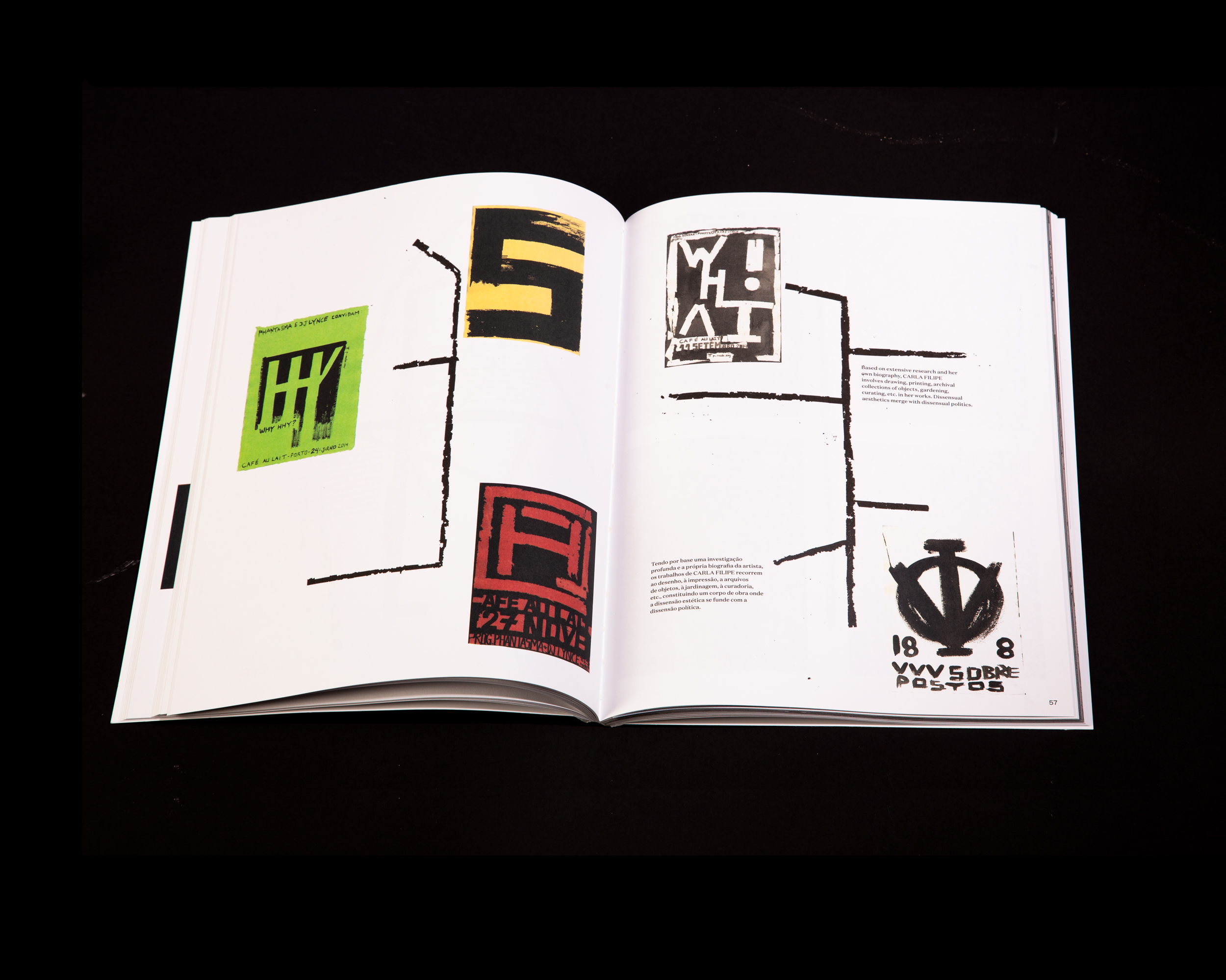 Like in the show, Filipe used the pages as the exhibition space, intervening on the book.