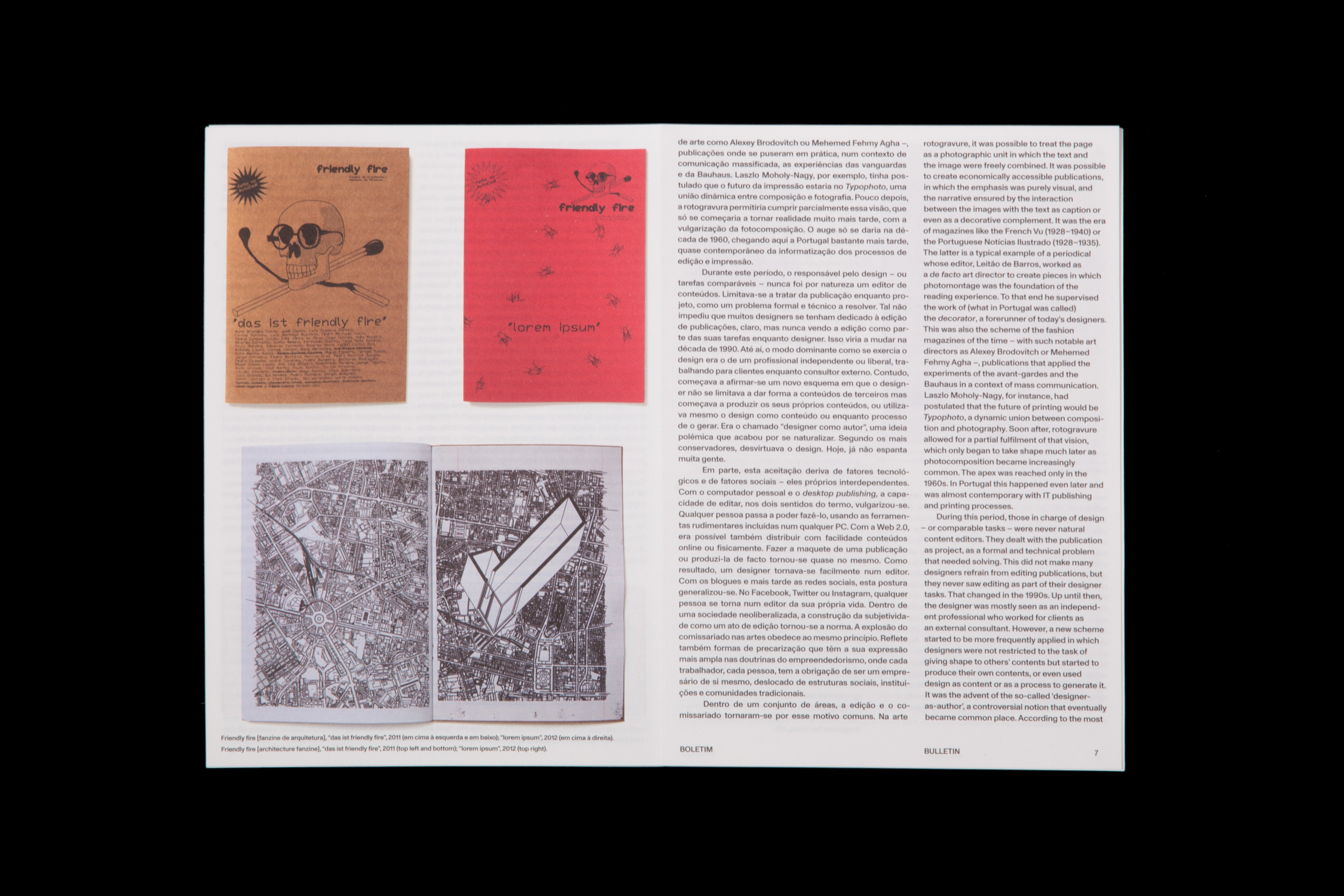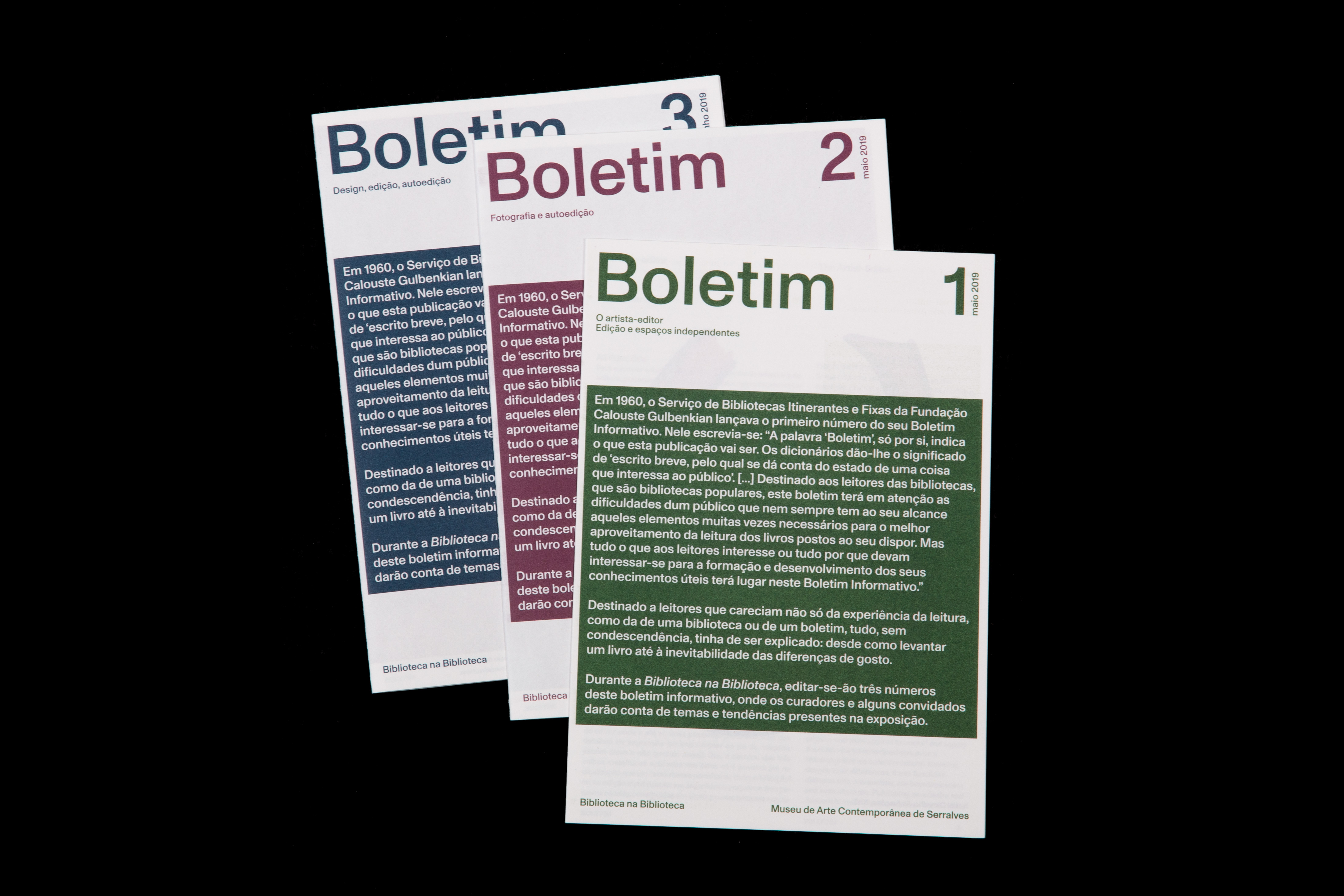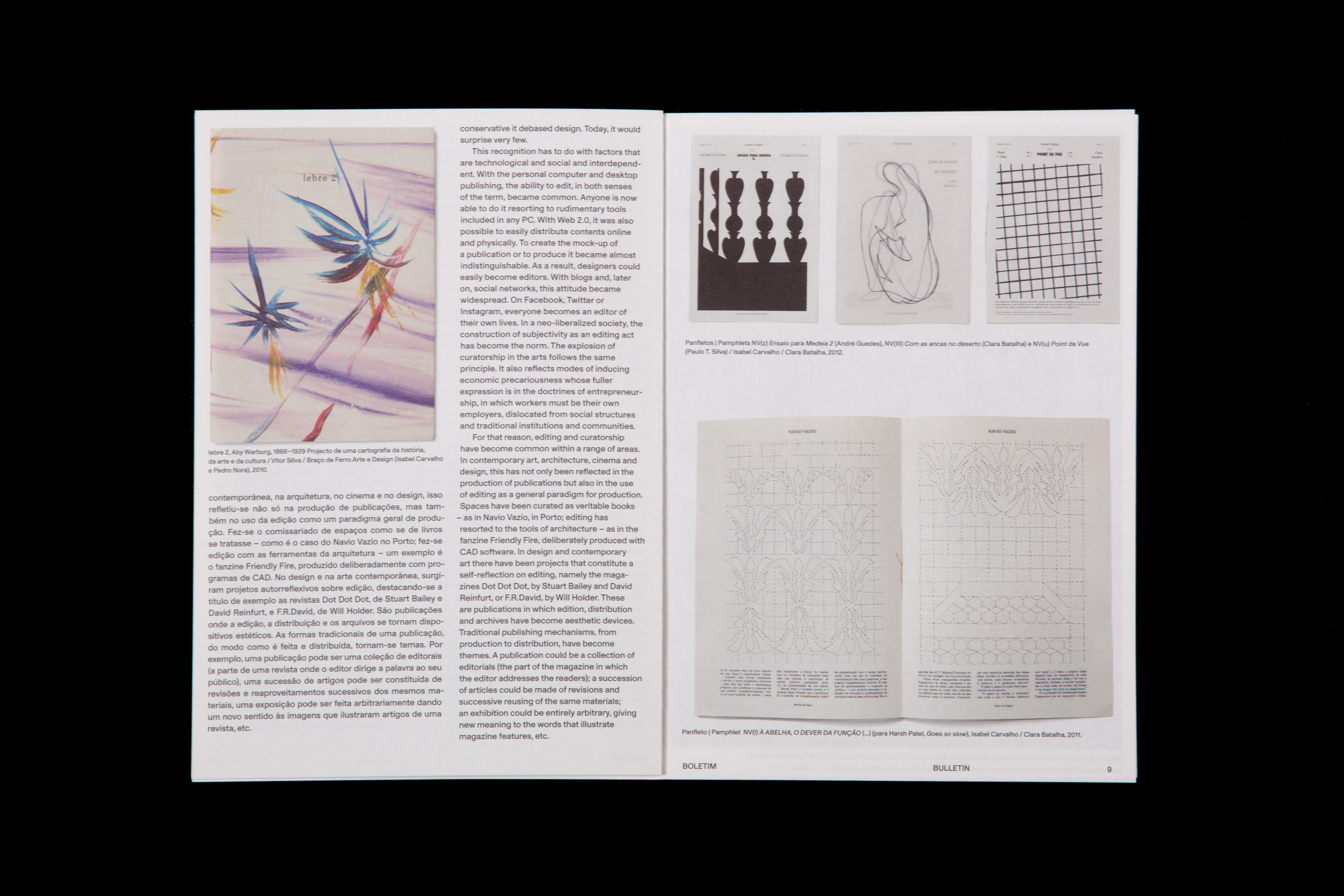 Boletim/Bulletin features texts and images of the exhibition Biblioteca na Biblioteca / Library in the Library, a show that documents and presents the independent publishing scene in Porto.