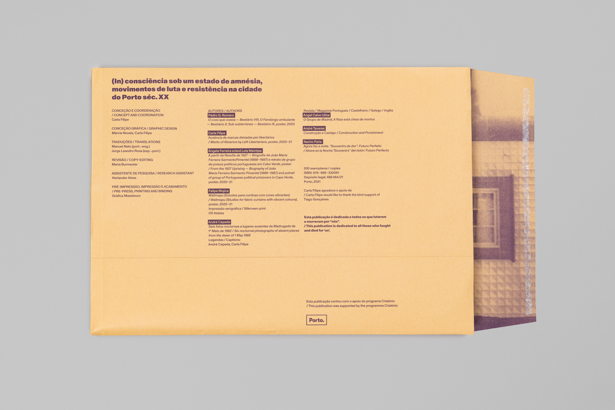 “(In) consciência sob um estado de amnésia – movimentos de luta e resistência na cidade do Porto séc. XX” [(Un) consciousness under a state of amnesia – movements of struggle and resistance in the city of Porto century. XX] is a mail-art publication conceived by Carla Filipe with whom I collaborated on the graphic design.